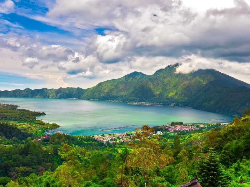- Vous poursuivez ensuite vers Kintamani, village perché offrant une vue spectaculaire sur le Mont Batur et son lac, lové dans une caldeira impressionnante.